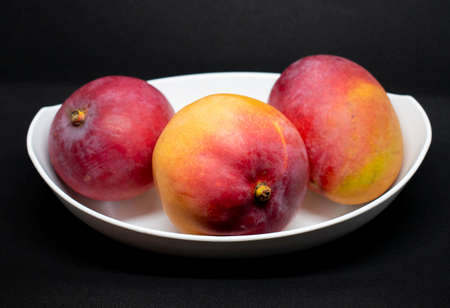 Manga venezuelan bowl. Three mangas. Mango in bowl black background Venezuelan fruit manga