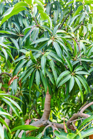 Mango trees in the genus Mangifera, a tropical fruit tree in the family. Anacardiaceae Scientific name: Mangifera indica is a plant that originated in India.