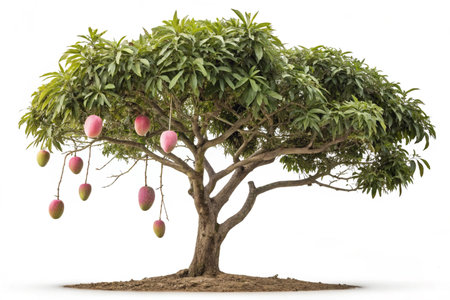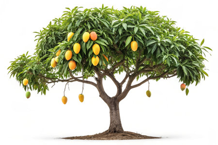 Tropical Mango Tree with Ripe Fruit in Lush Greenery