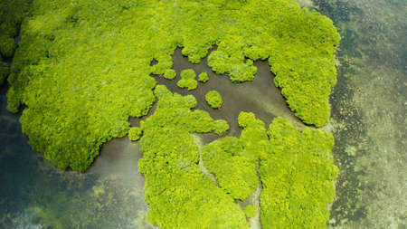 Mangrove trees in the water on a tropical island. An ecosystem in the Philippines, a mangrove forest.