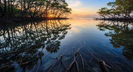 Mangrove forest and sun lay