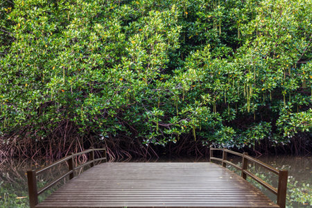 Wood bridge in mangrove forest