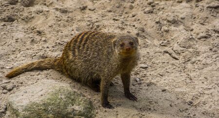 Closeup portrait of a banded mongoose, Adorable tropical animal specie from africa, popular pets