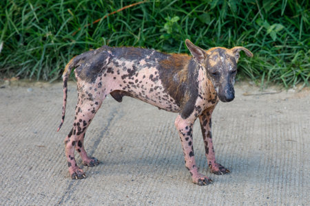 Scabies Dog have Dermatitis on skin, Homeless dog