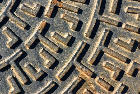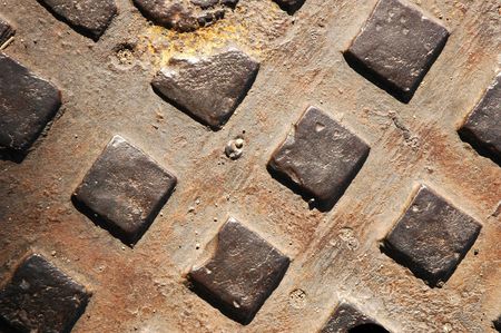 Metal sewer manhole cover fragment as a background