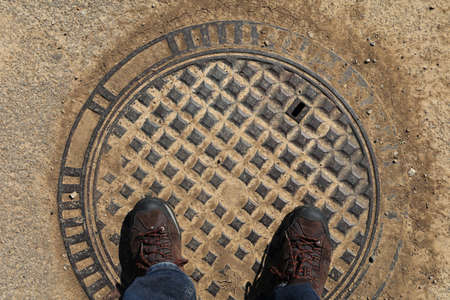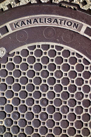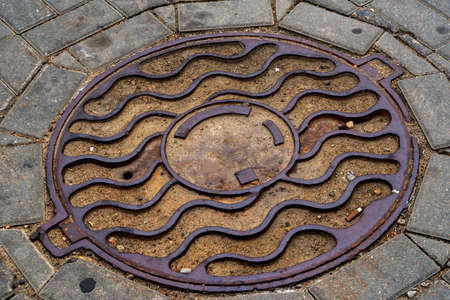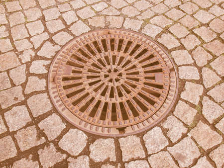 Detail of a manhole in the street vintage