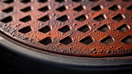 Closeup of a rusty manhole cover