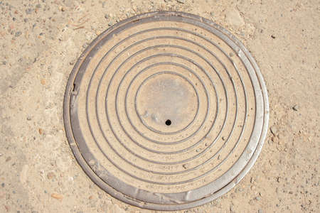 Gothenburg , Sweden - December 5 2012: Rusty manhole cover in the middle of a road.