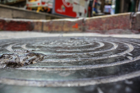 Florence, Italy - MAY 10, 2018: Old shabby manhole in Florence
