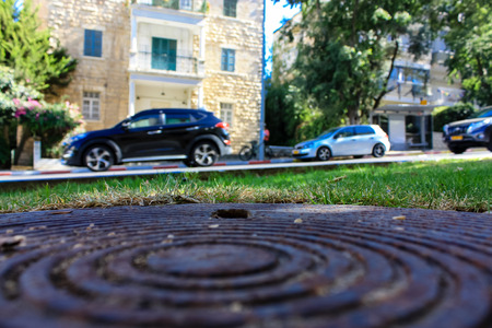 Russia, Krasnodar district. Old street sewer manhole cover