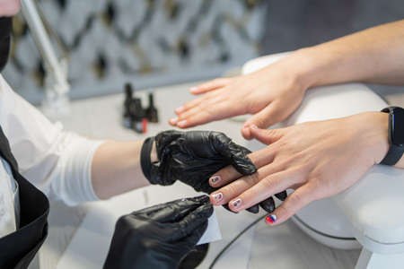 The process of manicure in a beauty salon close-up