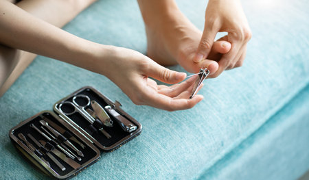 Woman cutting nails,with blur tools of a manicure set,closeup