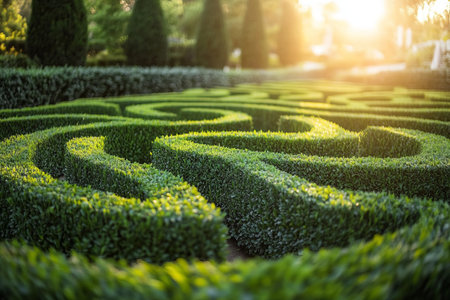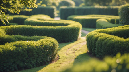 Exploring a complex hedge maze in a formal garden the art of landscape design and intrigue