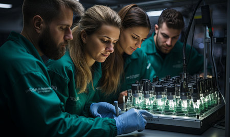 Workers engage in organizing storage drawers in an industrial setting, showcasing their hands at work with attention to detail and precision.