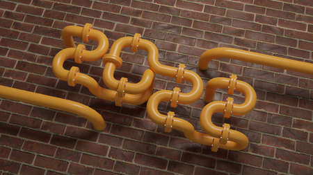Year 2022 Lettering Made With Pipes on Red Brick Wall Background 3d Illustration.