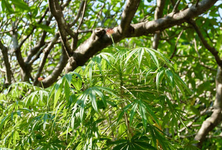 cassava tree and leaf, cassava or yucca fields, tapioca plantation for background