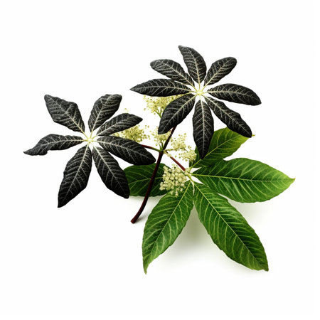 Detailed Close-up of Manihot esculenta Leaves, Showcasing the Intricate Vein Structure and Palmate Shape, Excellent for Botanical Studies and Natural Backgrounds.