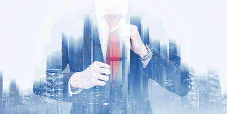 Double exposure businessman, and futuristic city background