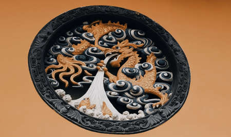 Traditional Chinese sculpture in the form of a dragon and a lion.