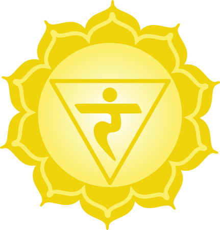 Vector illustration manipura. Chakra glossy icon . The concept of yellow root chakra for design at India stile.