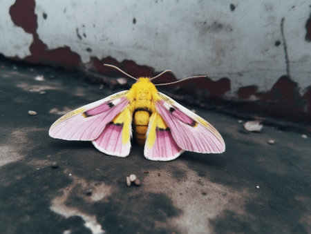 Generative AI : Yellow butterfly on cement wall