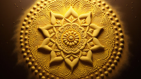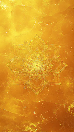A captivating golden mandala design radiating energy against a cosmic background. This artwork symbolizes harmony and spirituality, perfect for meditation and inspiration.