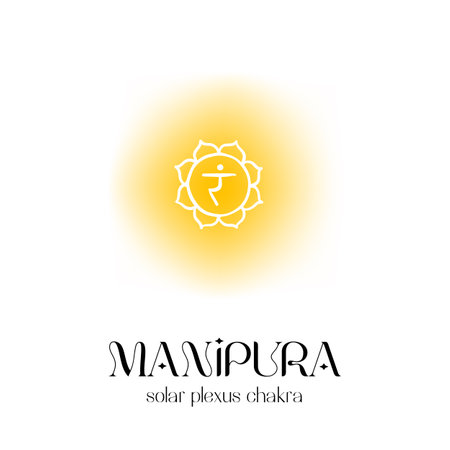 Glowing manipura symbol with solar plexus chakra on white background