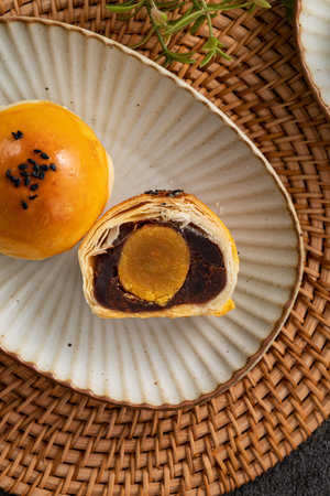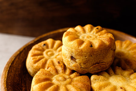 Traditional Chinese pastry against dark background for food and bakery concept