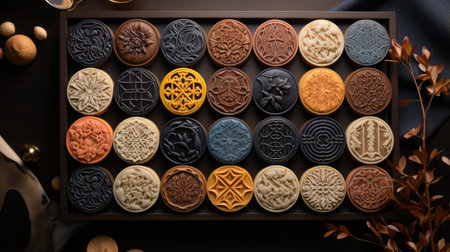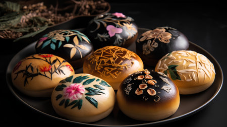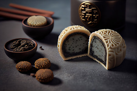 Black Sesame and Pecan Snowskin Mooncakes. Generative Ai