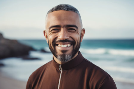 Portrait of smiling african american man standing on the beach