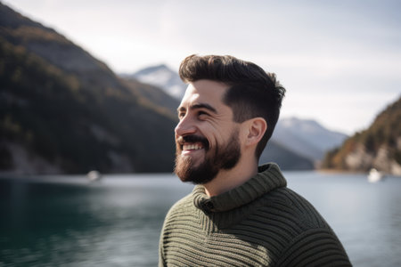 Portrait of a handsome young man with beard and mustache looking at camera