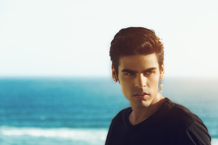 Portrait of a handsome man standing on the beach and looking away