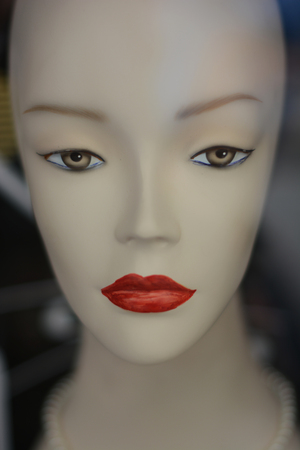 Lips of the dummy. Dummy in purple. Nose and lips.