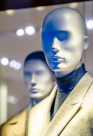 Shop dummy fashion mannequin in store boutique shop window artistic photo.