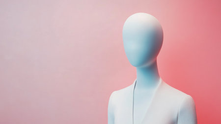 A chic mannequin stands elegantly in a modern outfit, complemented by a pastel background and clean lighting, offering a stylish presentation.