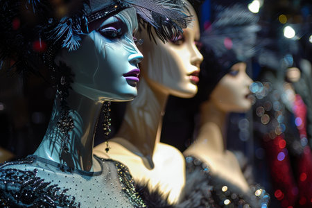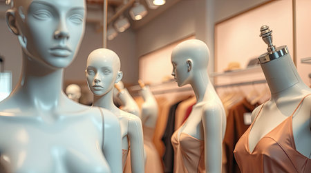 Female mannequins in fashion house, vibrant color effect, stylish display