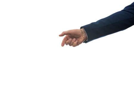The open palm of a mature man against a dark red background. Gesture of greeting, handshake. close-up. selective focus. Defocus, noise, grain effect.