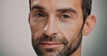Close Up Portrait of a Handsome Mature Man with Freckles and Clear Skin Looking Calm and Relaxed