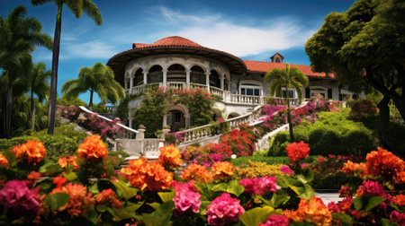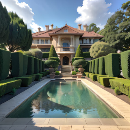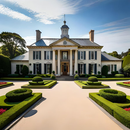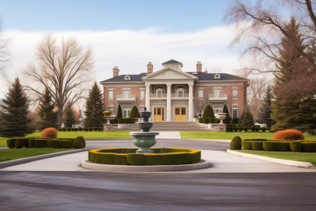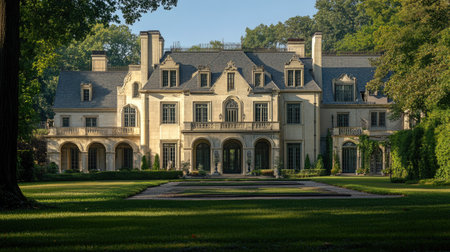 A majestic mansion with a stately facade and sprawling grounds, offering plenty of space for text placement.