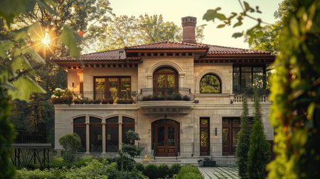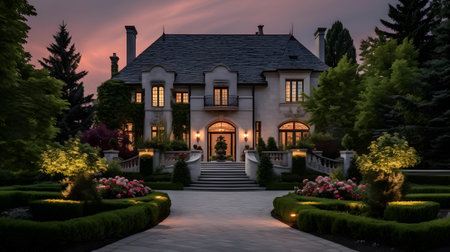 Large luxury mansion with beautiful classic The luxurious home has scenic