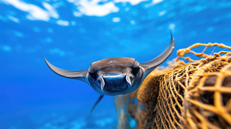Manta ray caught in tangled ocean debris