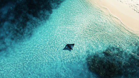 Generative AI : Aerial View of a lone Southern stingray lying on the sand flat Berry Islands the Bahamas