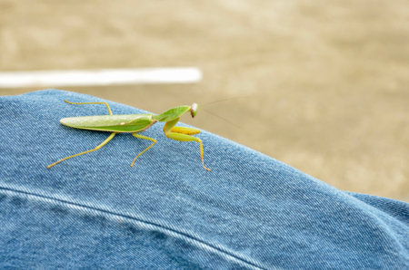 Female European Mantis or Praying Mantis, Mantis Religiosa. Green praying mantis