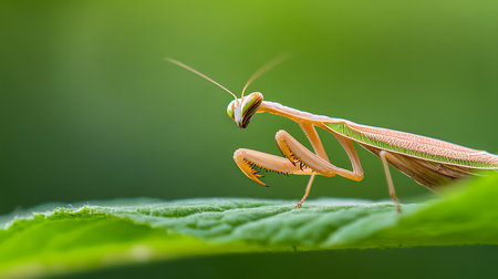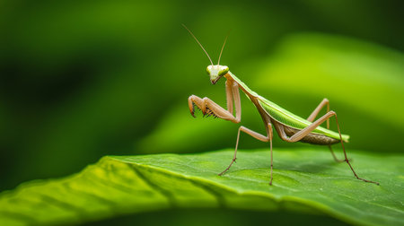 A praying mantis poised on a leaf, showcasing the stealth and patience of this fascinating predator