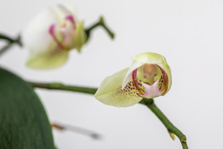 White opening phalaenopsis flowers (orchid) on light yellow background