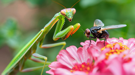 Close up of pair of Beautiful European mantis (Mantis religiosa)