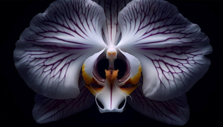 Closeup Photo of a White Gentle Orchid Flowers over Dark Background. The Most Delicate Creation of Nature. Romantic Gift for Valentine Day Holiday.