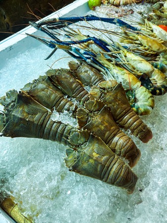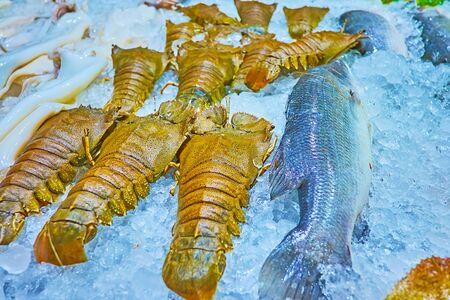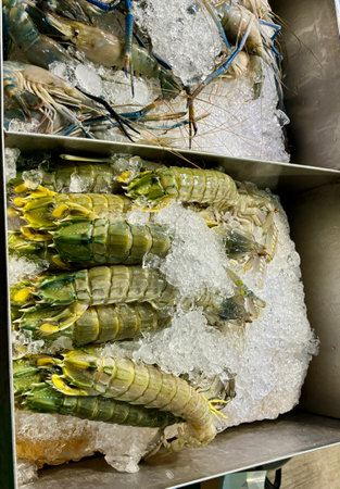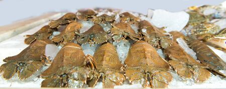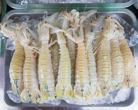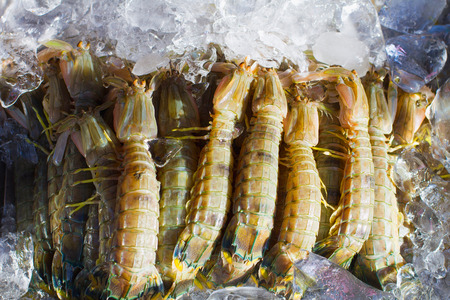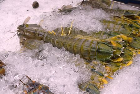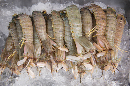 crayfish or mantis shrimp frozen on ice for cooking at restaurant in Thailand