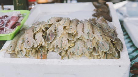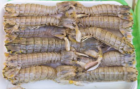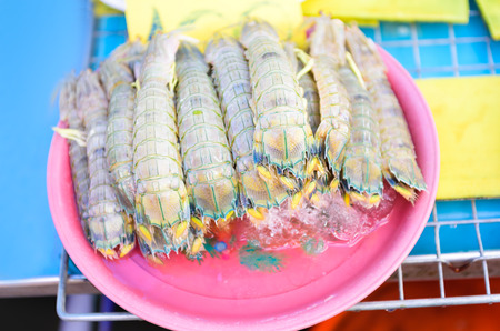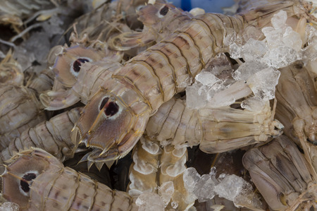 Fresh Mantis shrimp or Stomatopods in fish market, Thailand.