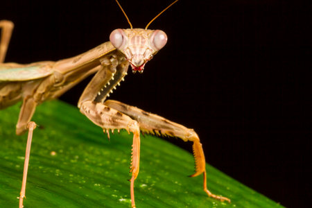 Macro of Griffin Mantis (Polyspilota griffinii) staring at the camera